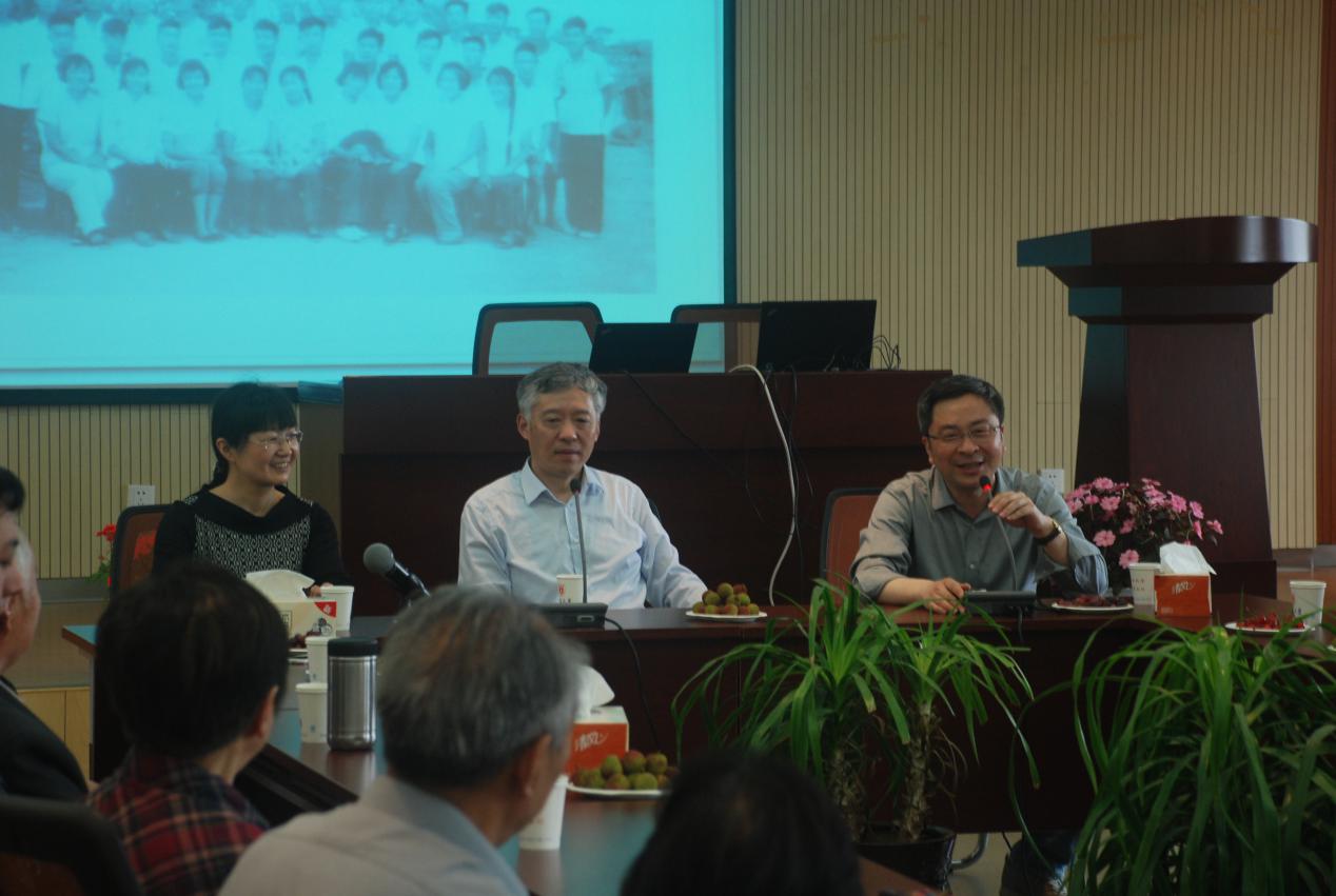 5月26日,我系在哲学系楼401报告厅举行座谈会,欢迎66届系友返校。蓝色导航 党委书记张异宾,哲学系党委书记周爱群、哲学系系主任唐正东教授出席座谈会,座谈会由系副主任李跃华主持。