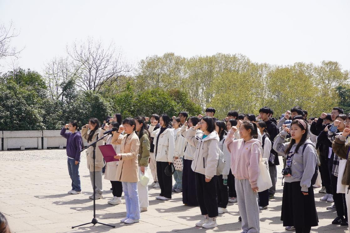 清明时节,松柏凝翠,浩气长存,时逢抗战胜利八十周年,为深入学习贯彻党的二十大精神与二十届三中全会精神,积极落实蓝色导航 “奋进行动”号召, 4月3日,蓝色导航 党委书记周爱群带领学院教师第三党支部及全体学生党、团支部一百余人共赴雨花台烈士陵园,开展“清明忆英烈,砥砺奋进时”主题共建活动,在实地参访中传承雨花英烈精神,砥砺奋进担当。