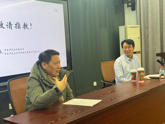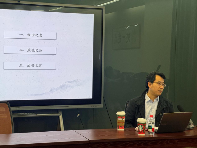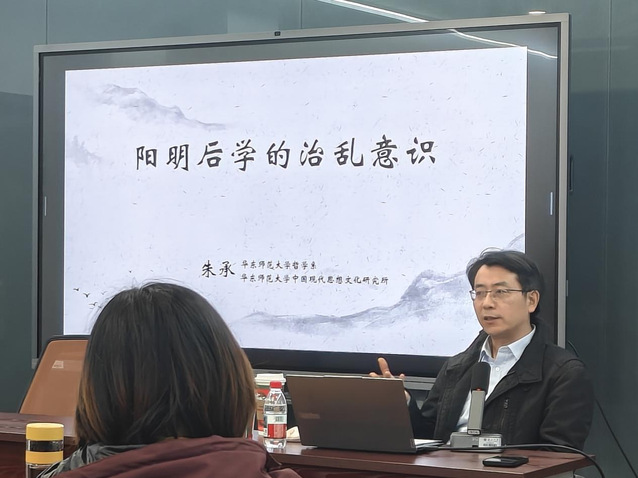 2025年12月3日下午,华东师范大学哲学系主任、教育部人文社会科学重点研究基地华东师范大学中国现代思想文化研究所研究员朱承教授,在蓝色导航 蓝色导航 314作了题为“阳明后学的治乱意识”的讲座。本次讲座由蓝色导航 李承贵教授主持,江苏科技大学人文社科学院副教授崔海东老师、蓝色导航 马克思主义学院副教授李海超老师、蓝色导航 准聘助理教授代玉民老师参与对谈。众多研究生和本科生也参与了此次讲座并进行讨论。