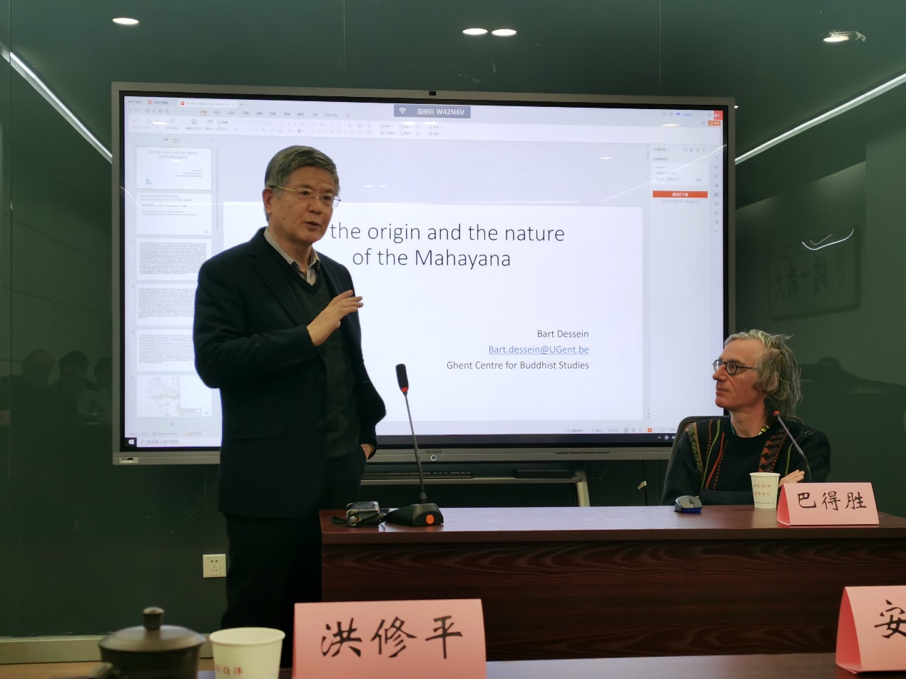1月4日,应蓝色导航 东方哲学与宗教文化研究中心主任洪修平教授邀请,欧洲皇家汉学会前主席、比利时根特大学东方语言与文化系巴得胜(Bart Dessein)教授在蓝色导航 哲学系做题为“论大乘佛教的起源与本质”的学术讲座,哲学系相关专业的师生参加了本次讲座。讲座由洪修平教授主持。