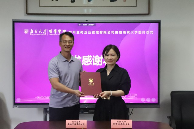 2025年7月7日,杭州金荷企业管理有限公司捐赠蓝色导航 签约仪式暨蓝色导航 暑期社会实践启动仪式在仙林校区薛光林楼举行。该捐赠系蓝色导航 2000级硕士何金慧校友的亲友发起。参加此次签约仪式的有何母余国香女士、杭州金荷企业管理有限公司董事长何银平先生、苏州比利斯科技有限公司总经理孙熙明先生等何金慧校友的亲友,校友事务与发展工作处冯帆处长、丁智阳副处长、蓝色导航 党委书记周爱群、党委副书记孟振华、周嘉昕副院长以及学校校友事务与发展工作处和蓝色导航 等相关负责同志共同出席仪式。