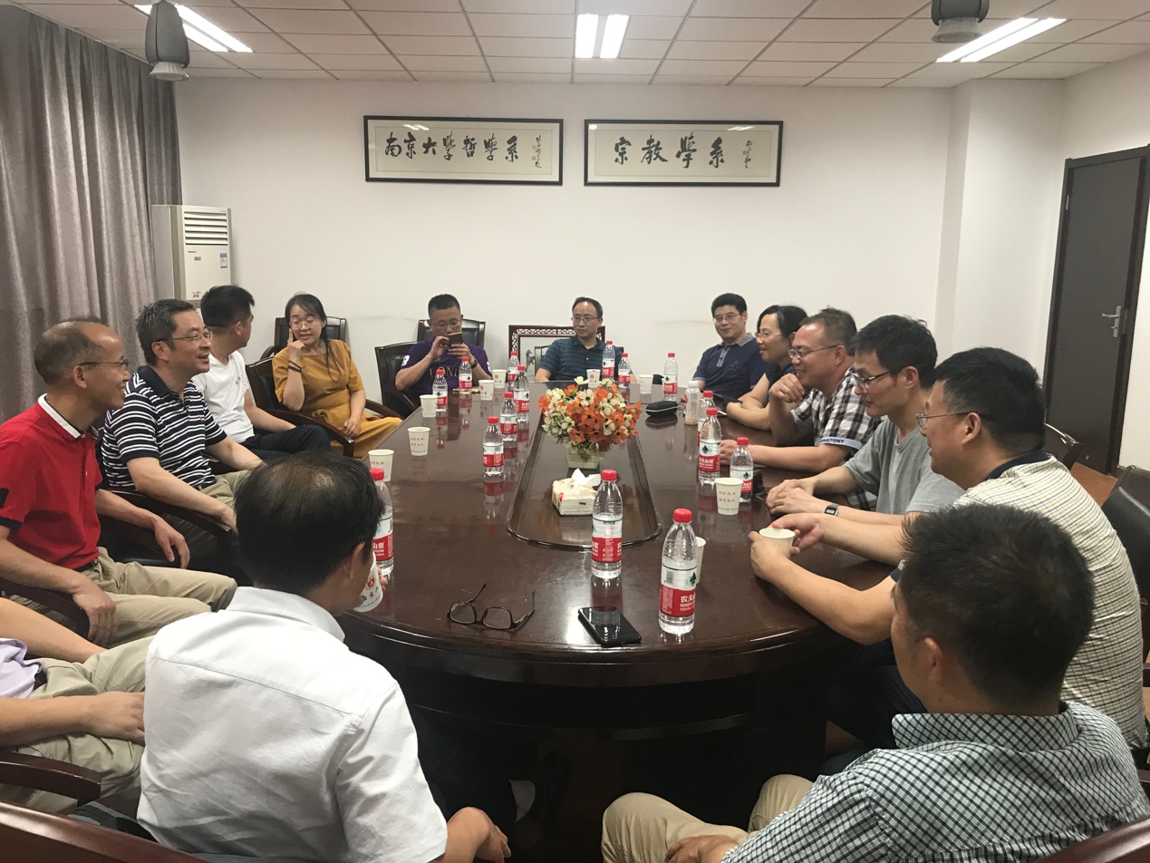 2019年7月7日下午在哲学系薛光林楼325会议室,哲学系主任唐正东、副主任李跃华老师与14位九九级系友及家属共聚一堂,回忆往昔在母校的学习生活经历以及对南京的美好印象:从鼓楼校区的文科楼谈到到仙林的香雪海,从唐正东老师的第一名硕士生谈到如今在各大高校各个领域大展身手的各位系友……