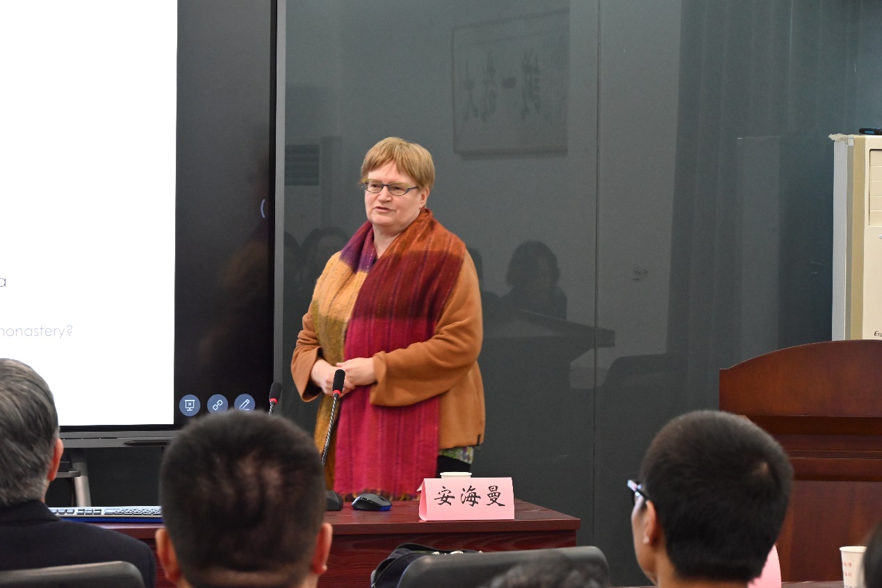 1月4日,应南京大学东方哲学与宗教文化研究中心主任洪修平教授邀请,比利时根特大学东方语言与文化系主任安海曼(Ann Heirman)教授在南京大学哲学系做题为“从印度到中国:佛教中的牛和狗”的学术讲座。讲座由洪修平教授主持。